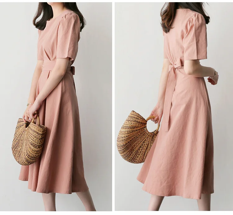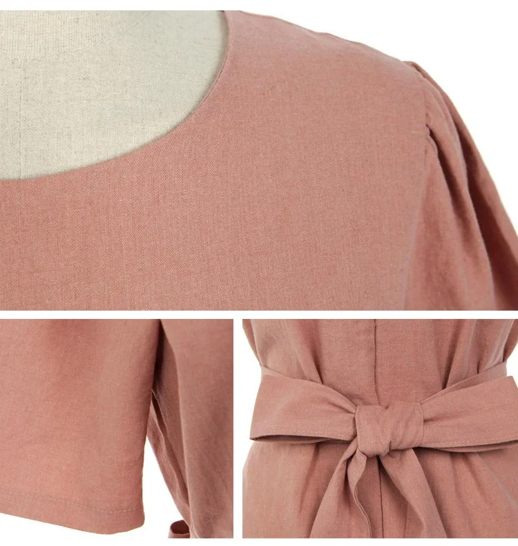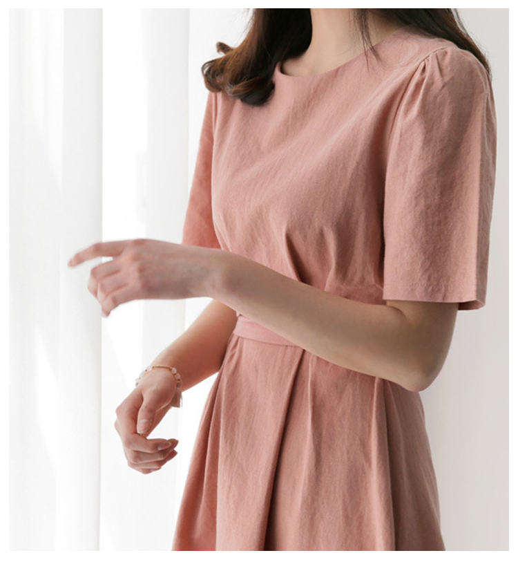 シンプルデザインの綿麻ワンピース