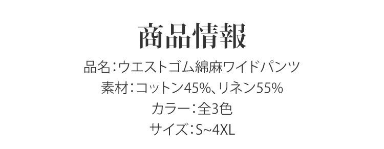 【富士吉田以外には店舗がありません】夏用綿麻ワイドパンツ